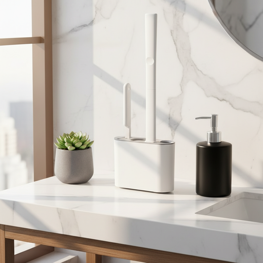 Silicone Toilet Brush Set with Adhesive Wall Mount | Flexible TPR Bristles | Quick-Dry Holder
