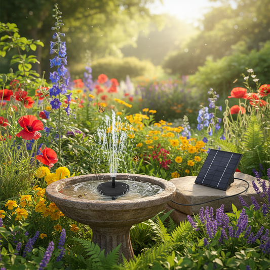 Solar Fountain Pump | 1.5W Solar Panel | 6 Nozzles | For Bird Baths, Ponds & Gardens