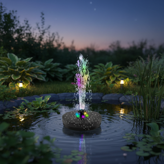 Solar Fountain with LED Lights | 3W Solar Panel | 7 Nozzles | Up to 23.6 in Spray Height