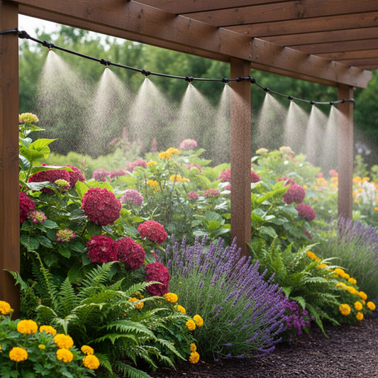 Automatic Misting Irrigation System | 33 ft Hose | 5 Brass Spray Nozzles | Garden & Greenhouse Use
